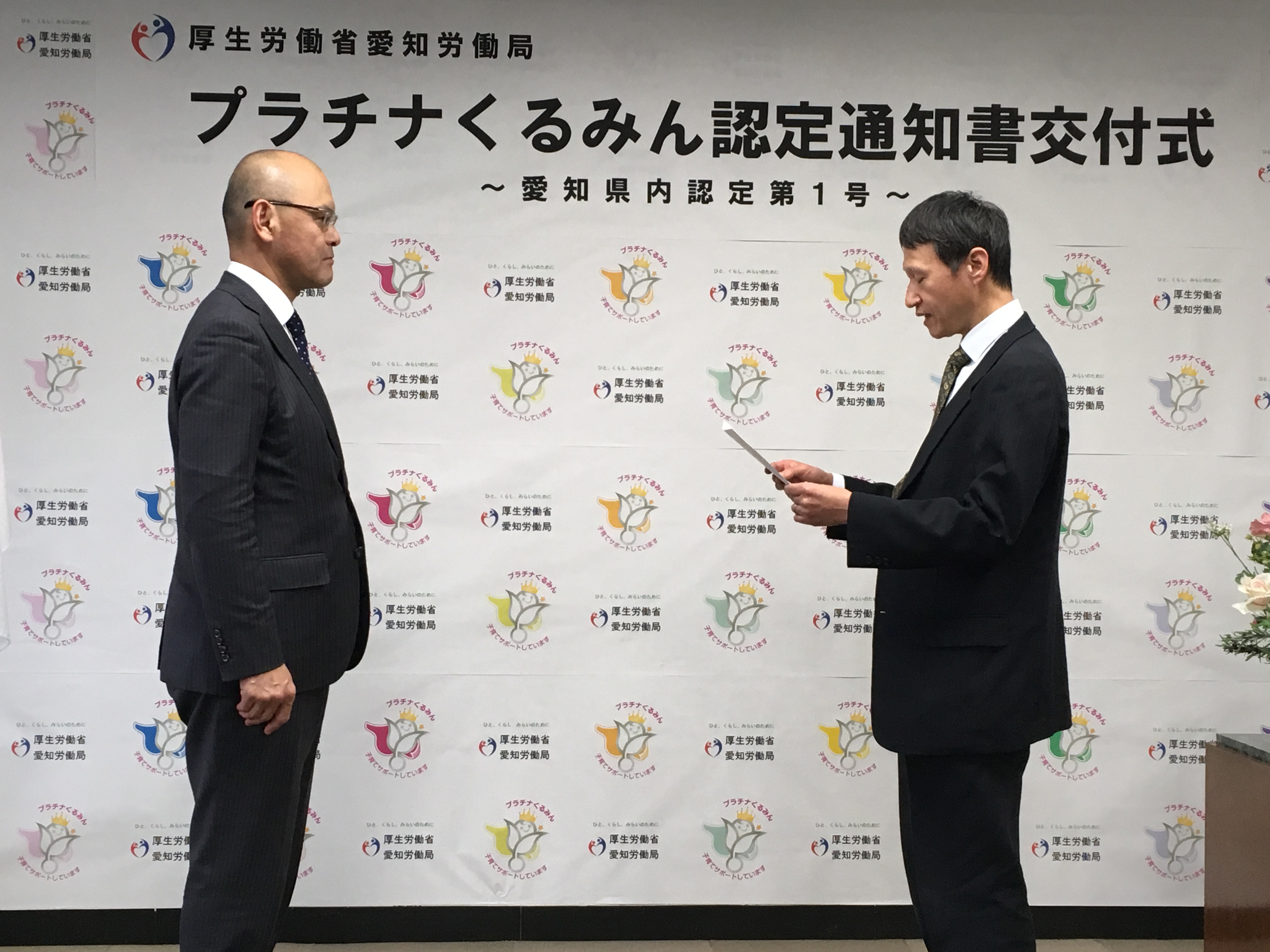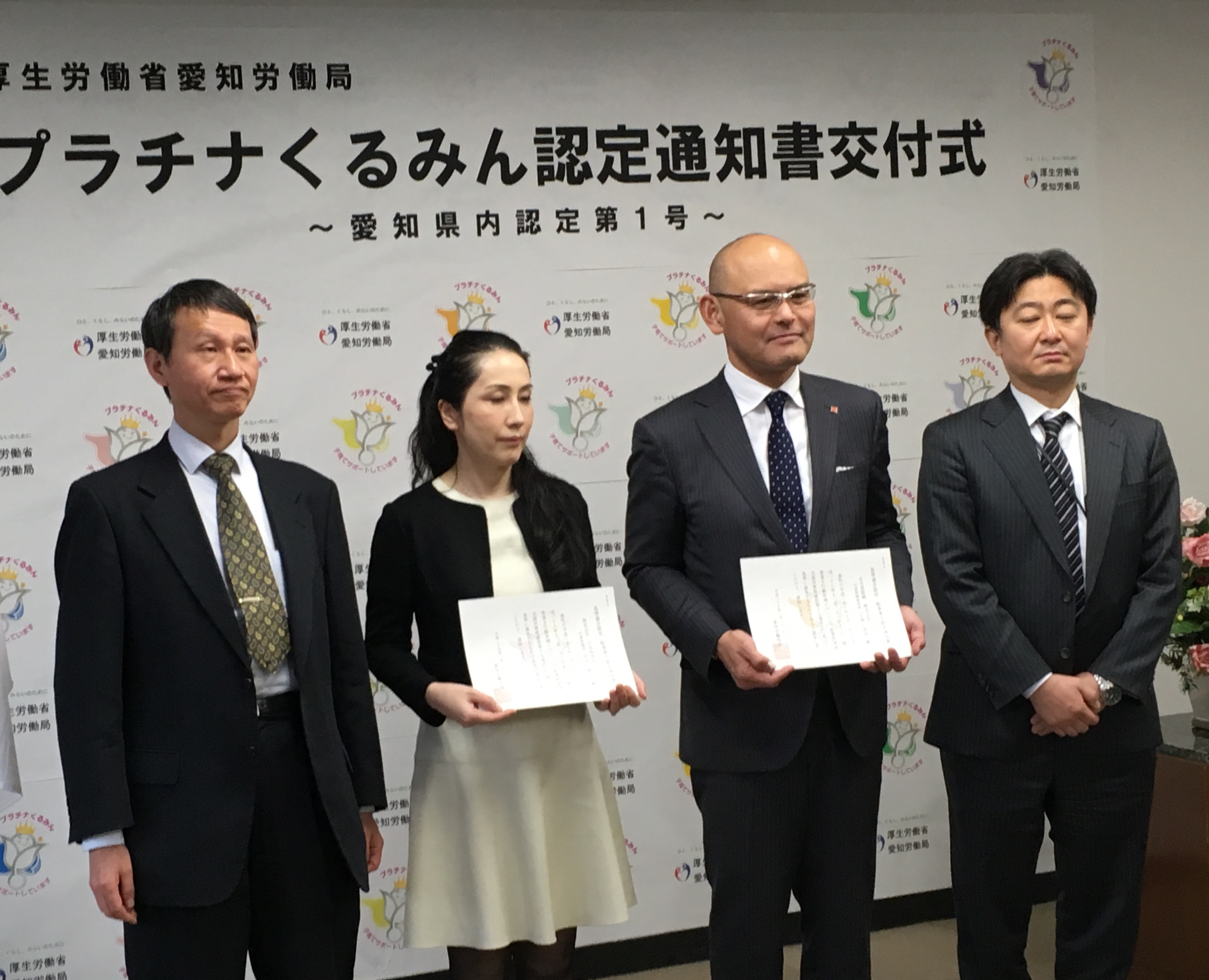愛知労働局(局長 木暮康二)ではこのたび、「プラチナくるみん」認定を行い、当組合の加盟企業である名古屋眼鏡が、愛知県内で第1号となる「プラチナくるみん」認定を受けました。