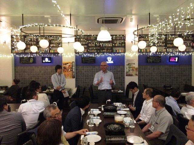 当日は組合員並びにその社員、そしてメーカー・商社の方々計31人が参加し、18時30分スタート。